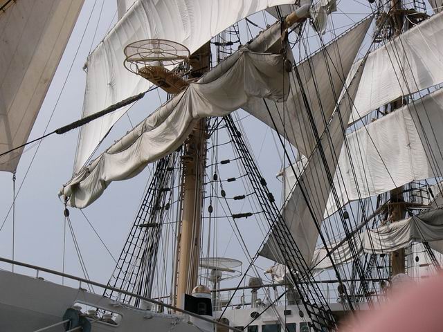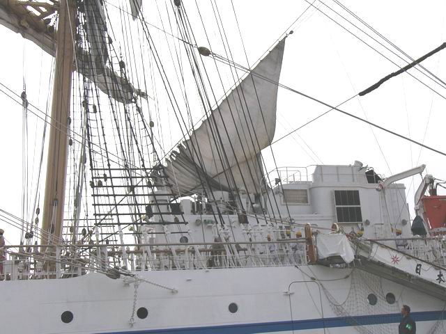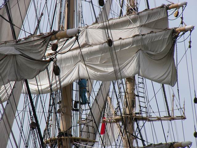帆をたたんでいる所