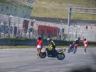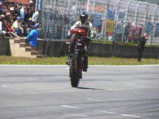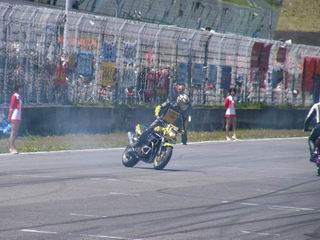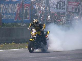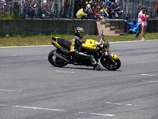 垂直に上げテールから火花も散らしてました。写真は撮れなかった。 バイクの横に降りてグルグル回っております。